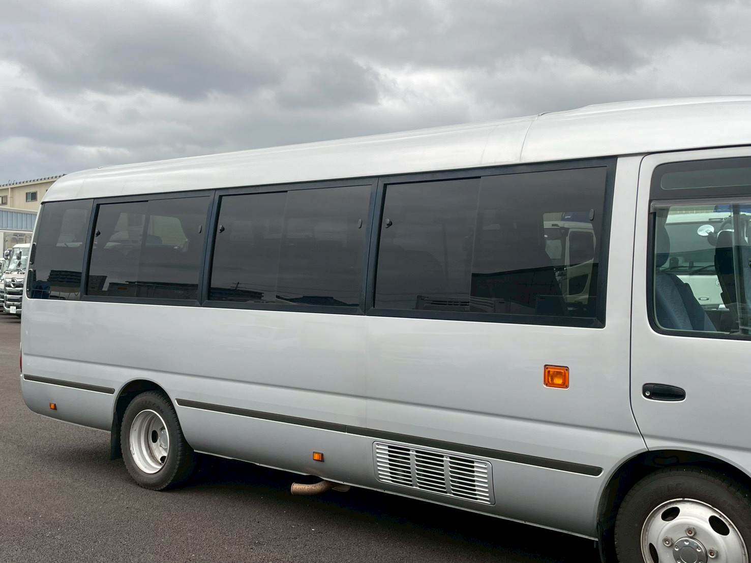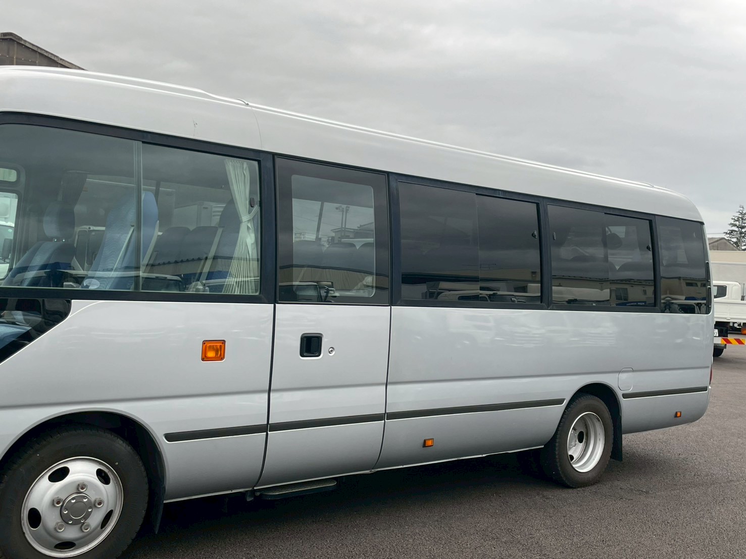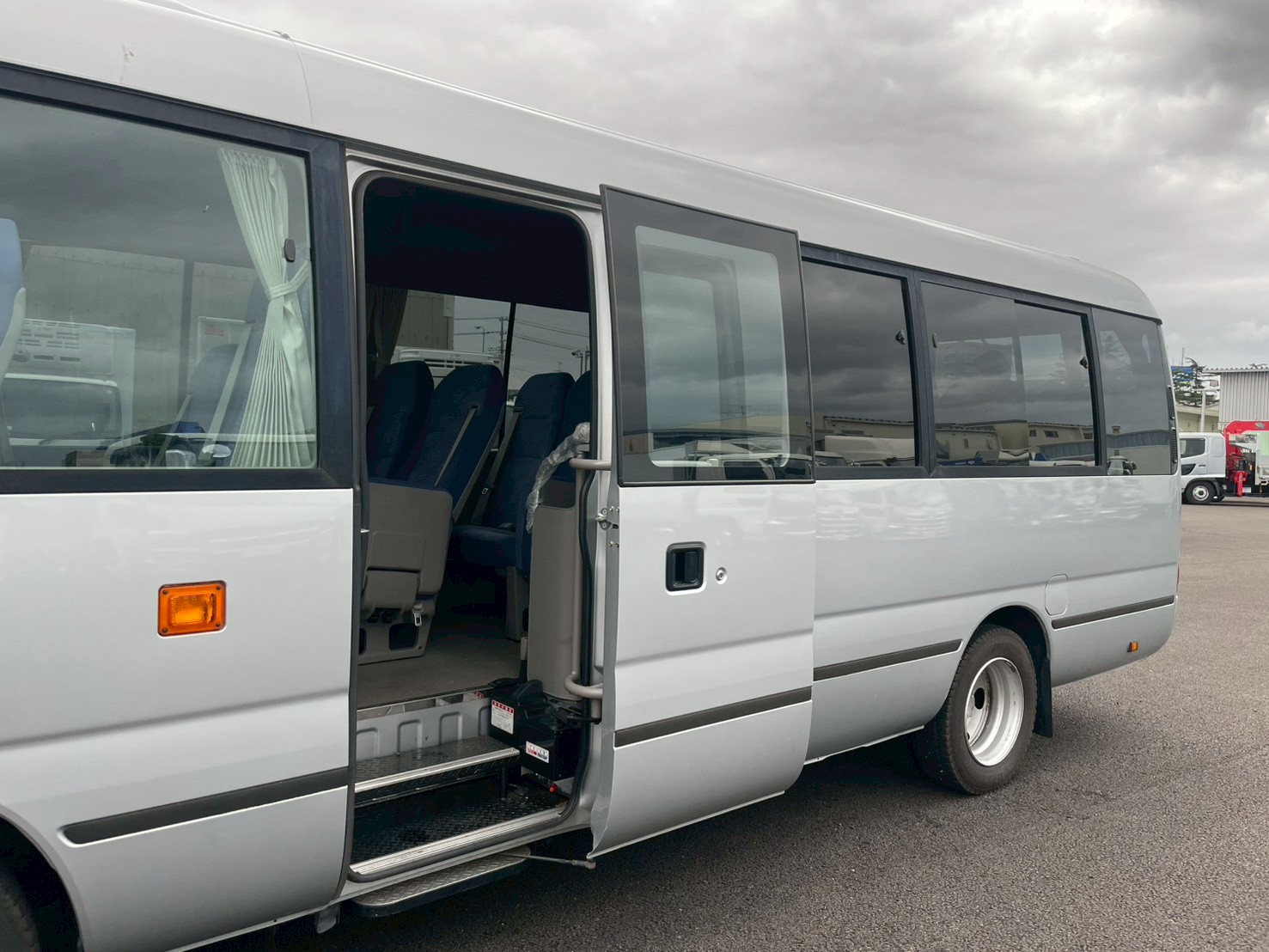 ボデー:29人乗り A/T モケットリクライニングシート 石上荷物棚 シートヒーター 左スイング扉 ドリングホルダー ナビ付 寒冷地仕様 マイク付