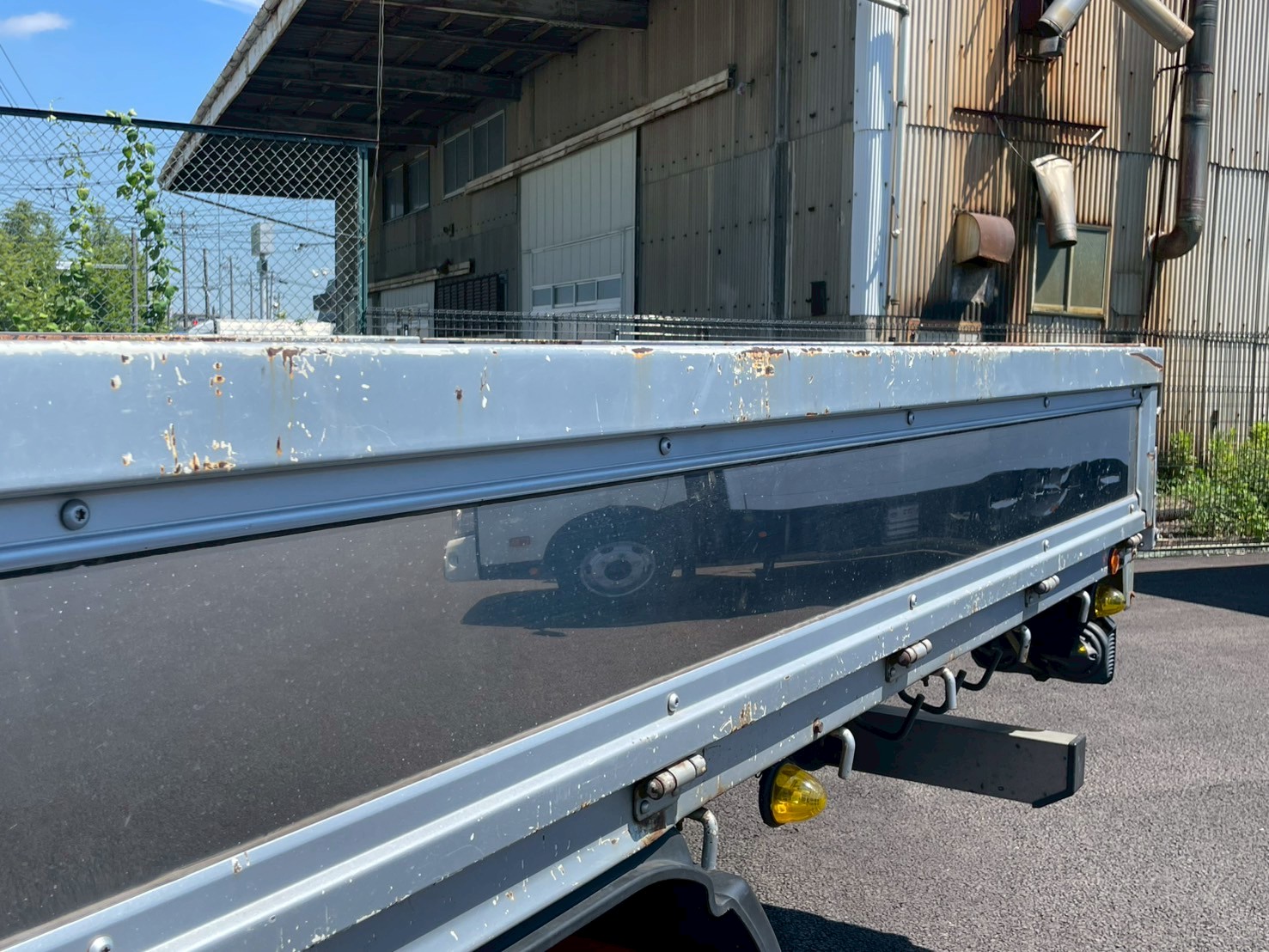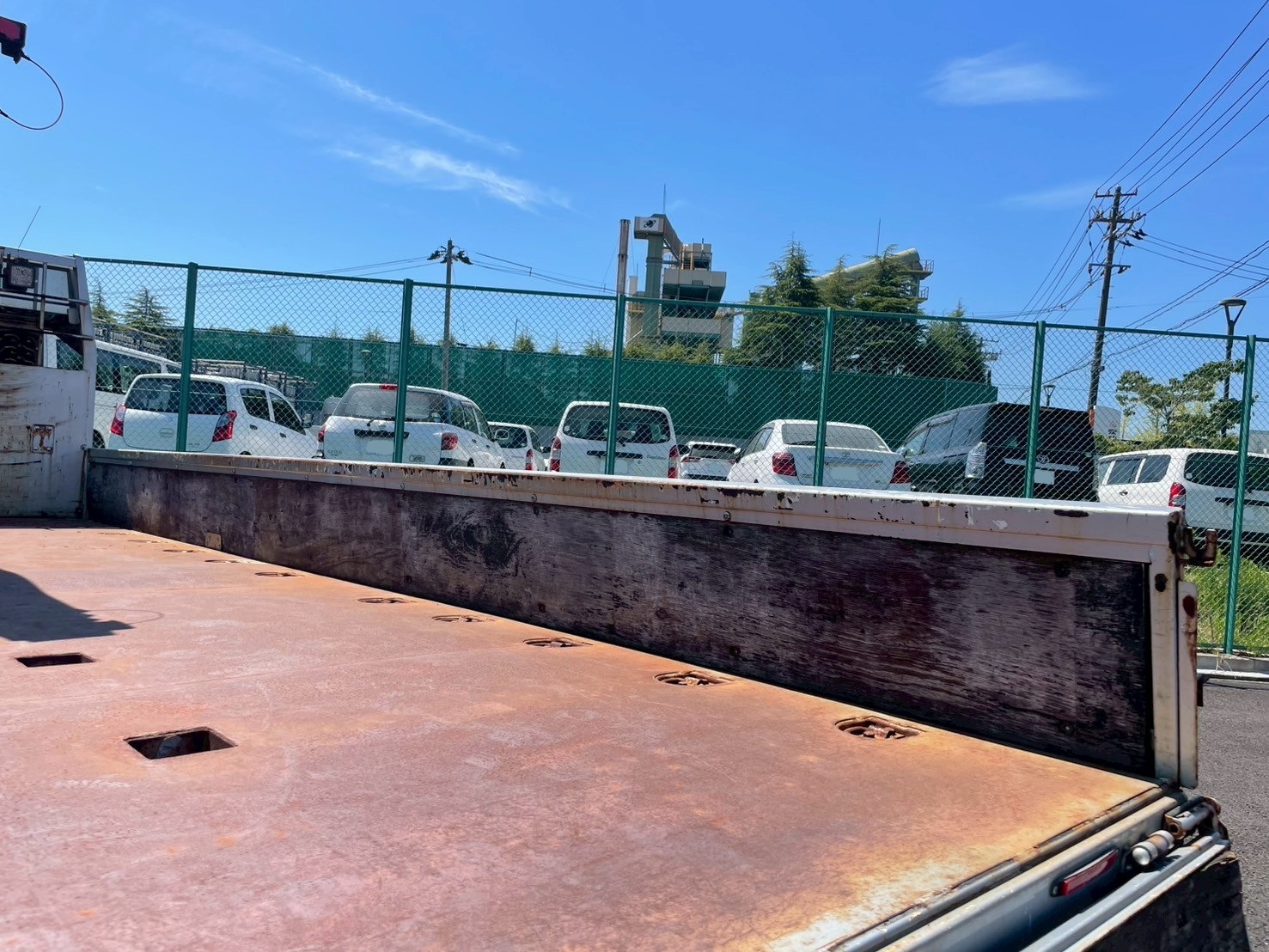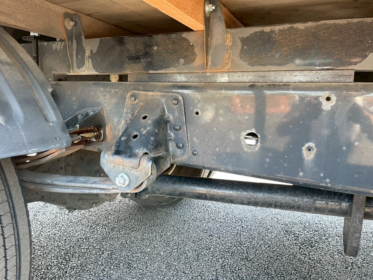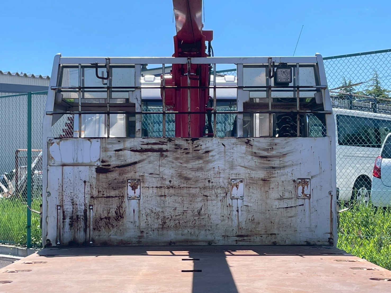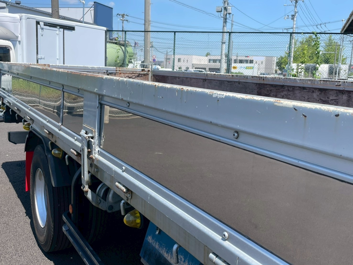 ボデー:日野STD 床鉄板張 床フック12対 スタンション穴4個 前壁作業灯1個