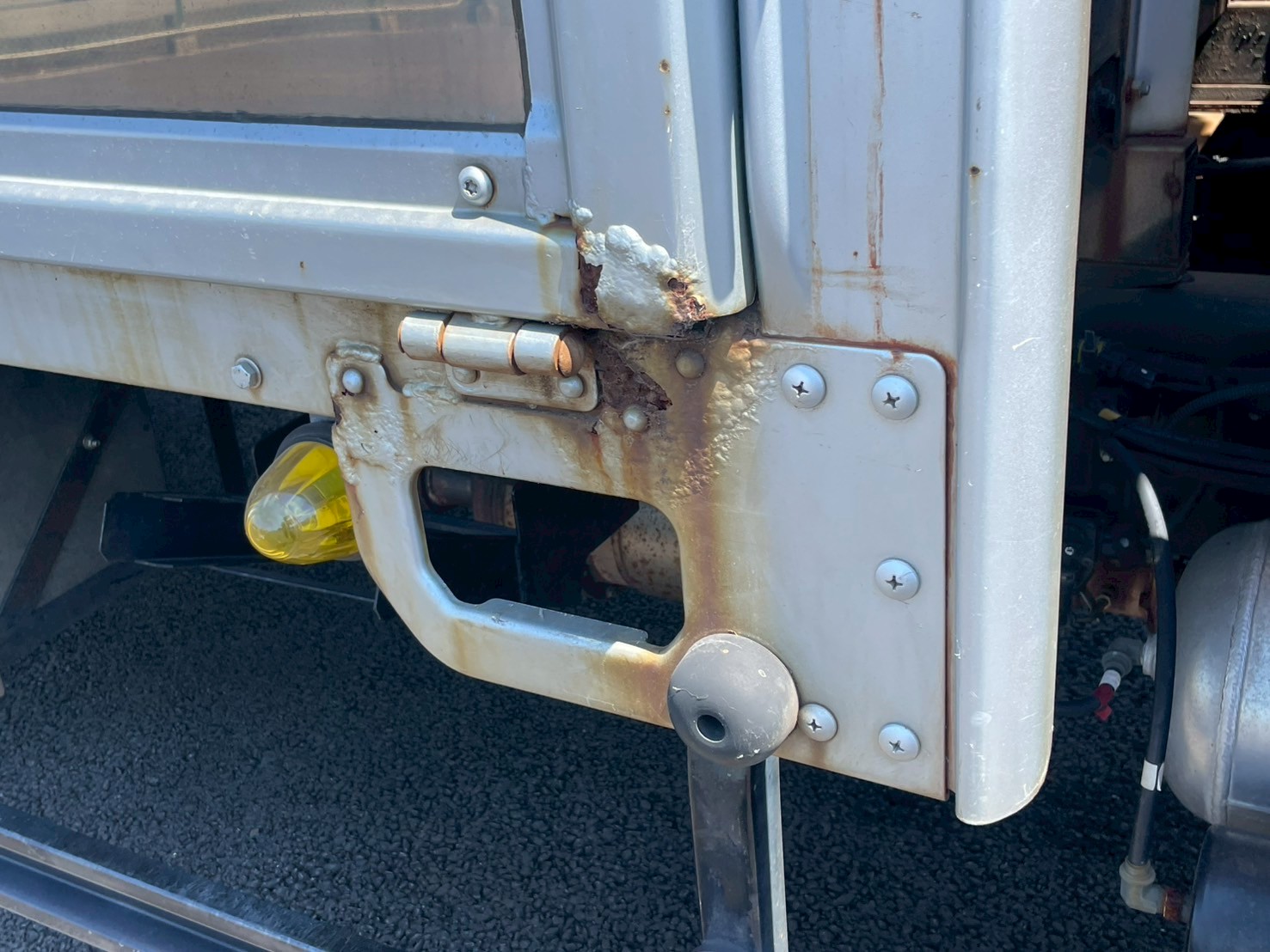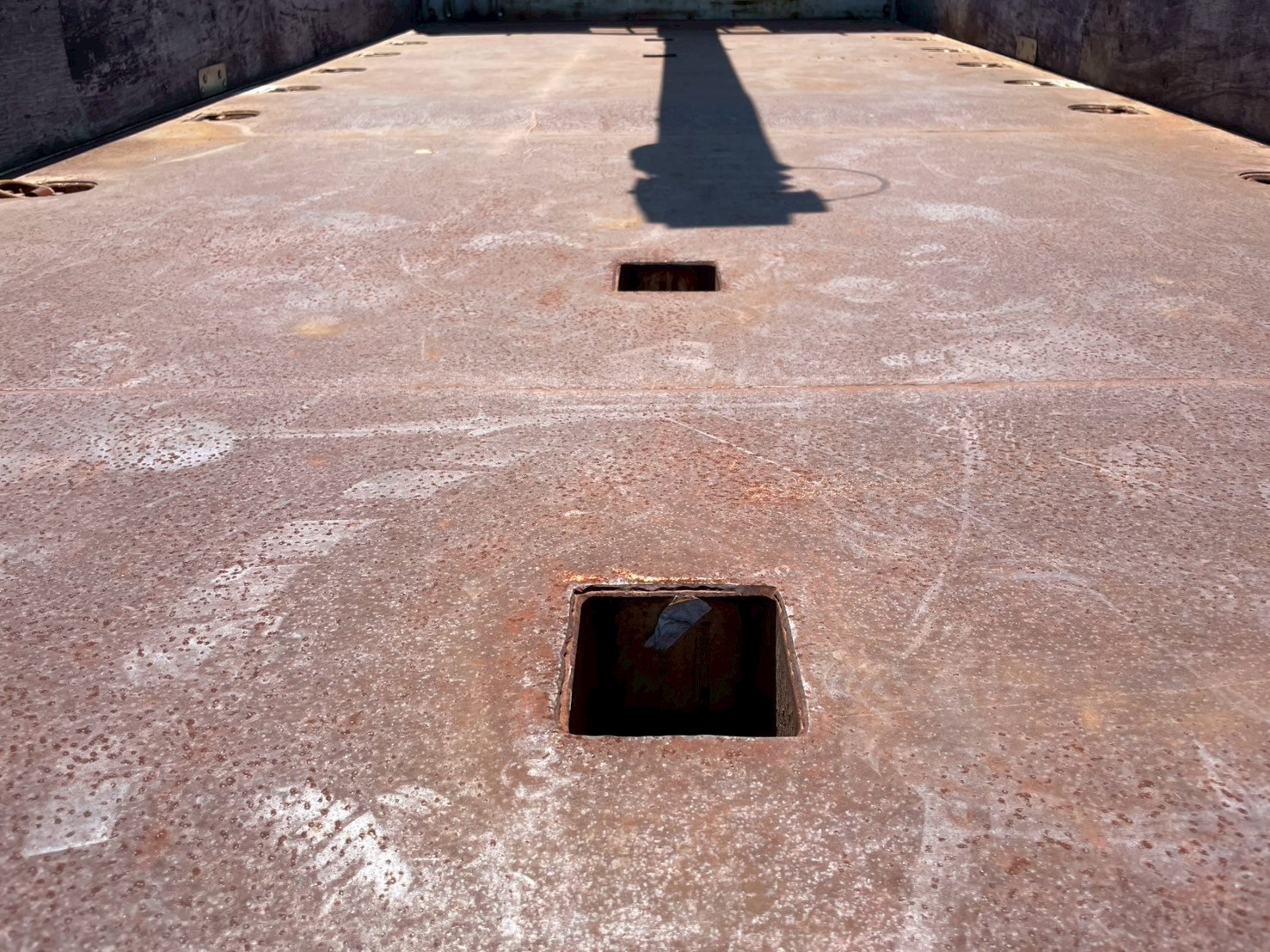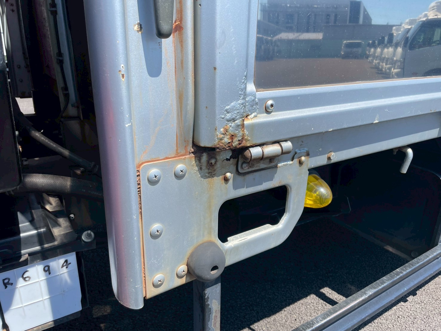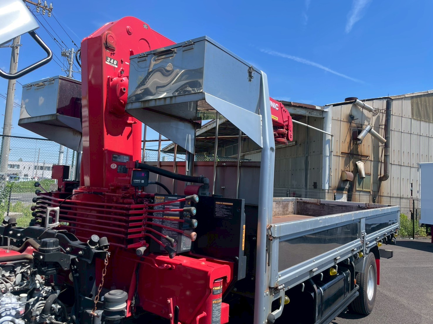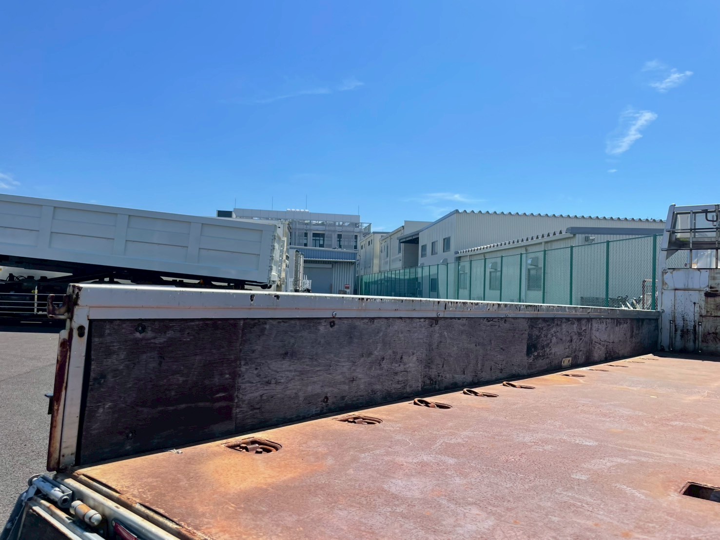 ボデー:日野STD 床鉄板張 床フック12対 スタンション穴4個 前壁作業灯1個